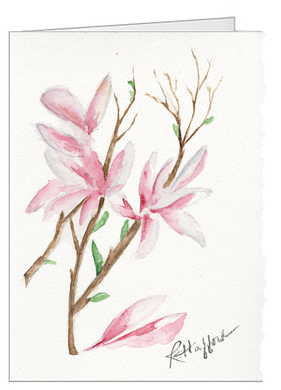 The cards shown here are printed on Watercolor paper using archival ink. Be sure to scroll down the page to see the entire selection of cards. The front of the cards are shown. The back of the card includes the artist's logo and the title of the painting. The inside pages are blank so you can include any message you desire and use the cards for any occasion you choose. Cards are shown with a deckled edge but are also available with a straight edge. Clicking on any card will display additional information about that card including price, size, & ordering information. Many of these cards include a description of the artist's inspiration for the painting.